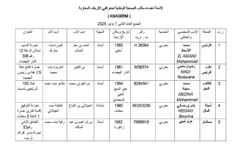 انعقد يوم السبت 1 نونبر 2025 بالمركز الجهوي لمهن التربية والتكوين الدار البيضاء سطات بمدينة الدار البيضاء, ابتداء من الساعة 10 صباحا إلى حدود الساعة 15، بالمدرح1،الجمع العام الثاني للجمعية الوطنية لجغرافيي الأرياف المغاربة (ANAGERM).