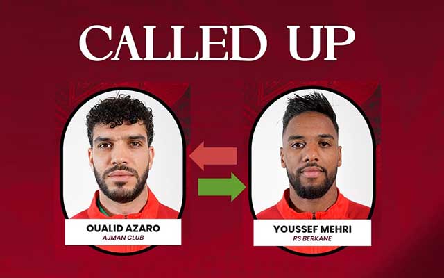 قرر طارق السكتيوي مدرب المنتخب الوطني المغربي الرديف إدراج اللاعب وليد آزرو، المحترف بنادي عجمان الإماراتي، ضمن اللائحة الرسمية للنخبة الوطنية التي ستشارك في كأس العرب الذي تنظمه قطر، وذلك تعويضا ليوسف ميهري لاعب نهضة بركان الذي تعرض للإصابة مع فريقه.
