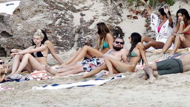 وبدا الممثل الأمريكي وسفير الأمم المتحدة للحفاظ على البيئة مستمتعا بوقته بصحبة عدد من الفتيات في أحد شواطئ جزيرة سانت بارتس بالكاريبي.