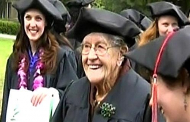 تخرجت سيدة أمريكية من الجامعة مع اثنين من أحفادها، ولكن بعد أن وصلت الجدة إلى التاسعة والسبعين من العمر.