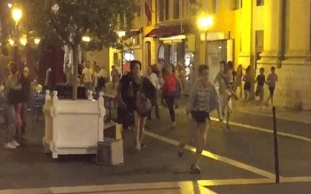ونشر رواد موقع "تويتر" للتواصل الاجتماعي أشرطة فيديو تظهر عشرات الأشخاص يفرون مذعورين مبتعدين عن الشاحنة.