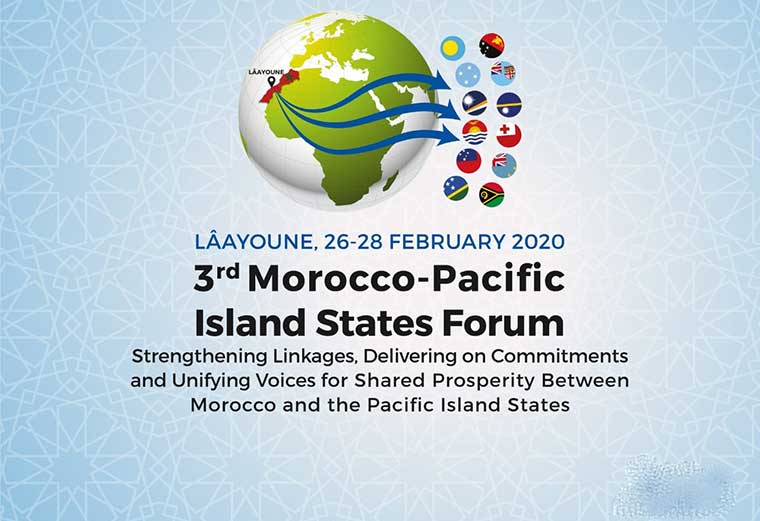 تستضيف مدينة العيون، في الفترة الممتدة من 26 إلى 28 فبراير 2020، الدورة الثالثة لمنتدى المغرب - دول جزر المحيط الهادئ، تحت شعار توطيد علاقات التعاون وتنفيذ الالتزامات التي اتخذت في هذا الشأن و توحيد الأصوات وتعزيز الرخاء المشترك.