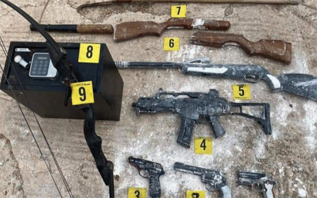 كما مكنت إجراءات التفتيش من حجز معدات أخرى مدفونة في حديقة المسكن، ويجري التحري حول ظروف حيازتها وملابسات إخفائها، وهي عبارة عن ثلاثة مسدسات نارية منها ما يطلق أعيرة معدنية، وبندقية صيد، وقطعتين مجزأتين من بندقيتي صيد، ورصاصات نارية ومجسم لسلاح أوتوماتيكي.