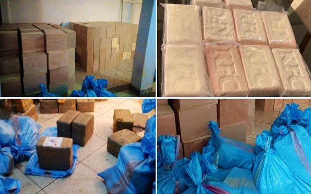 وأوضح المصدر ذاته أن عمليات التفتيش المنجزة بالمستودع الكائن بحي تسلطانت بمراكش أسفرت عن حجز حوالي ثمانية أطنان و840 كيلوغرام من مخدر الشيرا ، كان يجري التحضير لتلفيفها وتخزينها في مكعبات خشبية بغرض تهريبها نحو إحدى الدول الأوروبية، بينما تم العثور بالمستودع الثاني الموجود بضواحي مدينة خنيفرة على المعدات التي استعملت في تلفيف وتخزين هذه المخدرات بغرض التهريب الدولي.