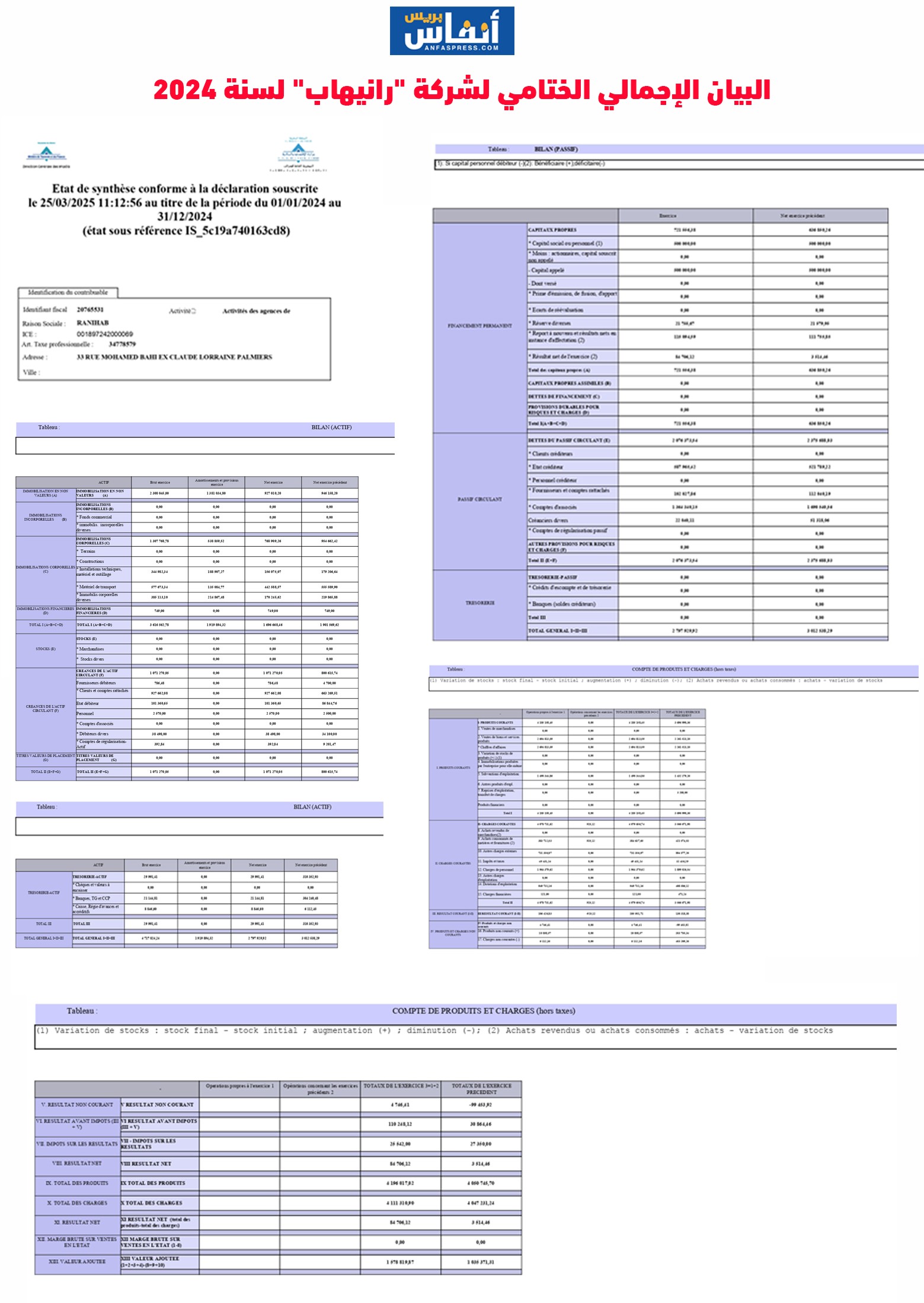 البيان الإجمالي الختامي لشركة "رانيهاب" لسنة 2024