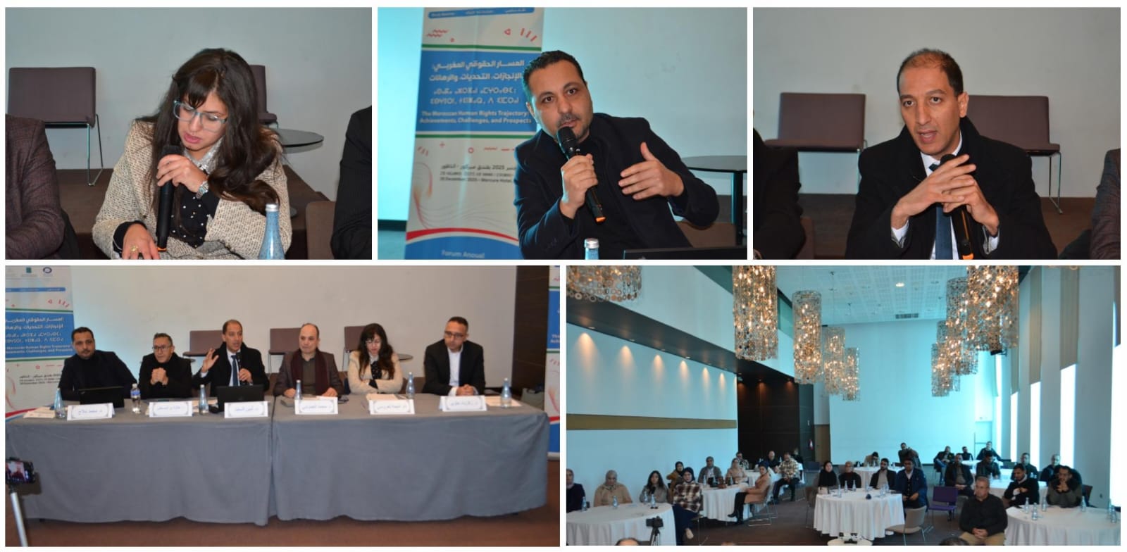 وشهد اللقاء تقديم مجموعة من المداخلات المتميزة، حيث قدم الأستاذ عكاشة بن المصطفى، مداخلة في موضوع "تحولات منظومة حقوق الإنسان والحريات العامة في المغرب"، وقدم الأستاذ محمد ملاح مداخلة بعنوان "السياسة المغربية في مجال حقوق الإنسان"، وناقش الأستاذ أمين السعيد موضوع "المسار الحقوقي المغربي في ظل التحولات الدستورية والتشريعية الراهنة"، وقدم الأستاذ زكرياء حلوي، مداخلة بعنوان "تآكل الوساطة وإعادة تشكيل الاحتجاج: مقاربة في تحولات الفعل الجماعي"، فيما ناقشت الأستاذة أميمة لعروسي، موضوع "حقوق النساء بين الإطار القانوني وتحديات الممارسة: قراءة في ظاهرة الاتجار بالنساء".
