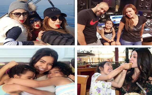 الصور تُظهر لقطات طريفة وعفوية جمعت النجمات العربيات وبناتهن اللاتي يحاولنَ تقليدهن بكثير من الأمور: