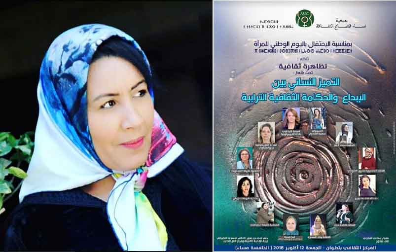 توصل موقع "أنفاس بريس" ببلاغ صحفي لجمعية نساء قطاع الثقافة، جاء فيه أن الجمعية ستنظم يوم 12 و13 أكتوبر 2018، بـ (جهة طنجة - تطوان - الحسيمة)، تظاهرة ثقافية تحت شعار "التميز النسائي بين الإبداع والحكامة الثقافية الترابية" وتحتفي هذه التظاهرة بالعديد من الأسماء النسائية المغربية الوازنة، في مجالات الثقافة والفن والبحث العلمي والمجال الفني التراثي، مع تنظيم لقاء مفتوح بين المشاركات وساكنة الجهة وتسطير زيارات ميدانية لمؤسسات ثقافية، ولقاءات فنية وتراثية ومعرض فني تشكيلي وإبراز مشاركة المرأة المغربية في المسار التنموي بجهود جبارة ومبادرات خلاقة.